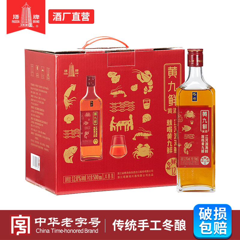 塔牌绍兴产黄酒黄九鲜花雕酒500ml*8瓶箱装手工冬酿半干加饭老酒