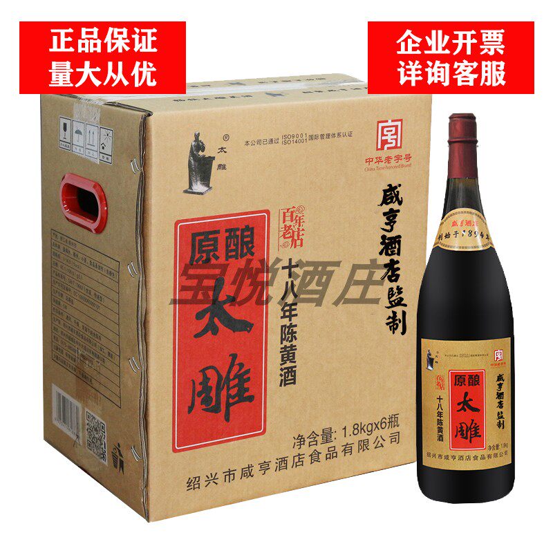 咸亨酒店太雕原酿十八年陈酿1.8kg*6瓶箱装老酒绍兴黄酒特产糯米
