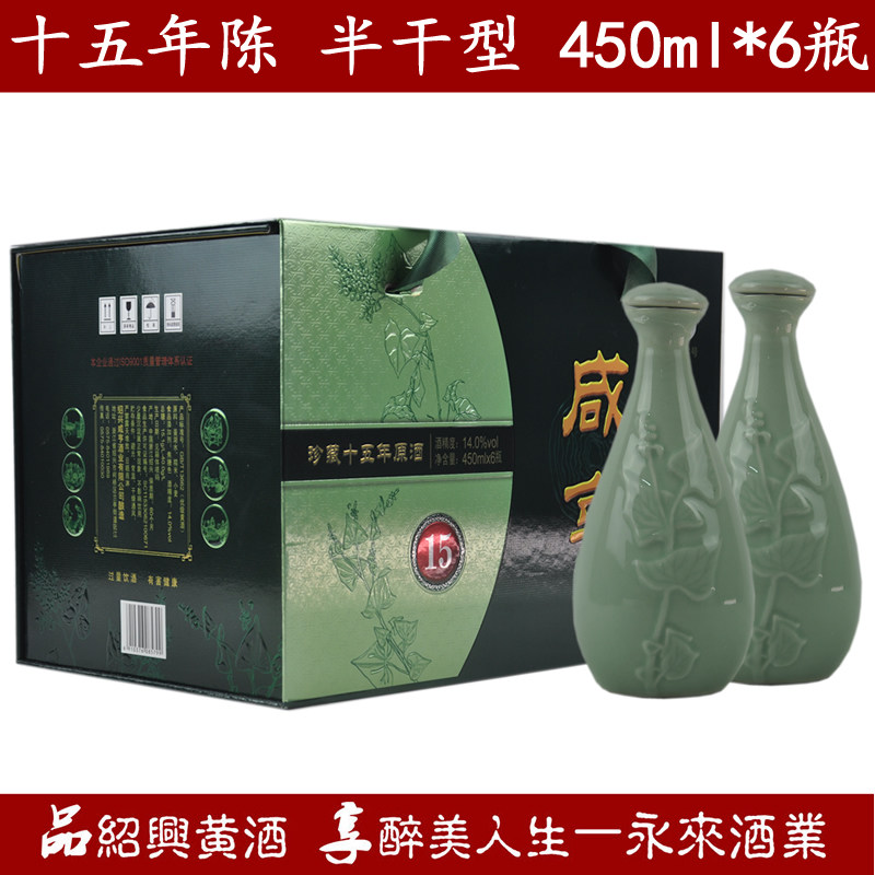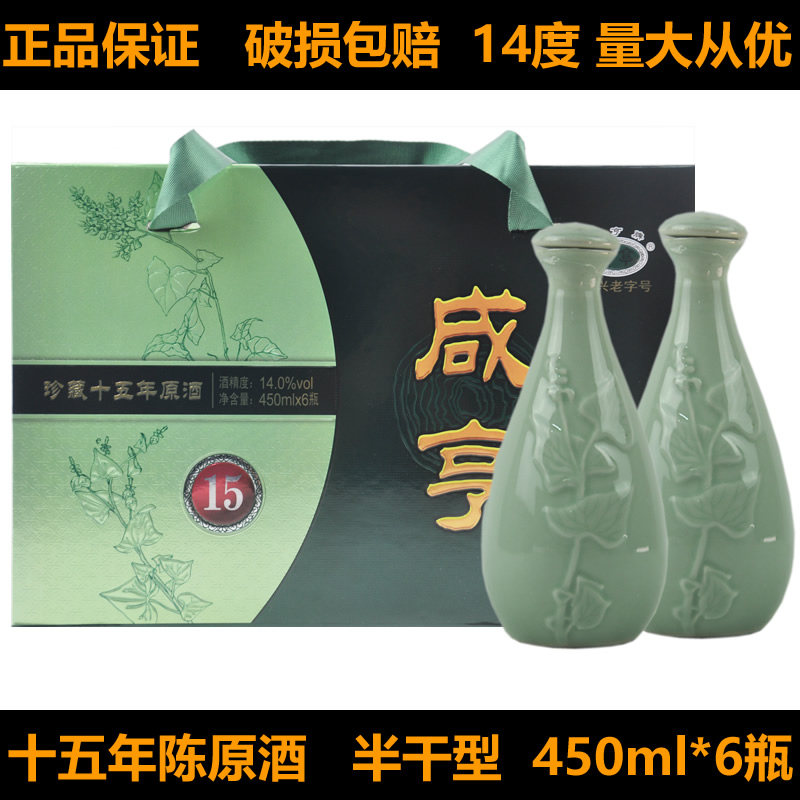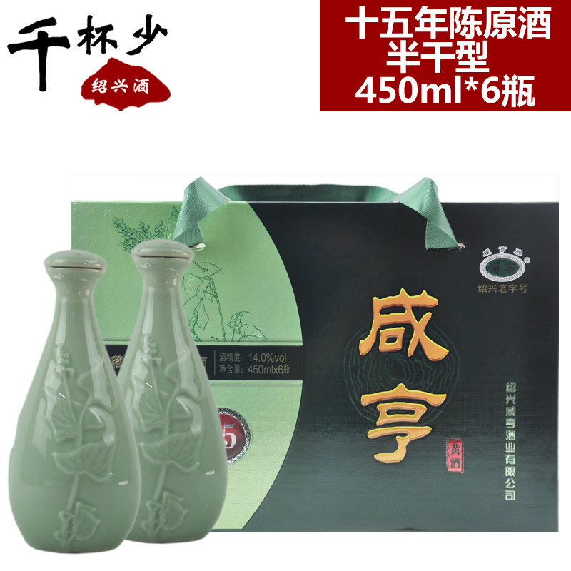 绍兴黄酒咸亨十五年陈原酒450ml*6瓶半干型箱装礼盒酒糯米酒