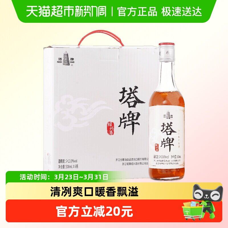 塔牌黄酒五年陈元红酒500ml*6瓶绍兴酒手工冬酿糯米酒箱装