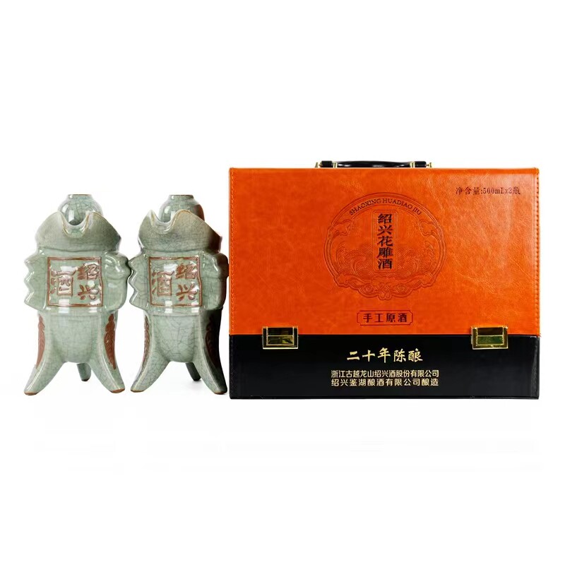 古越龙山送人礼盒皮箱装花雕酒二十年陈鉴湖糯米黄酒500ml*2瓶