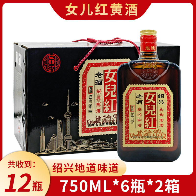 (2箱12瓶)绍兴女儿红黄酒 糯米花雕酒750ml*6瓶*2整箱装