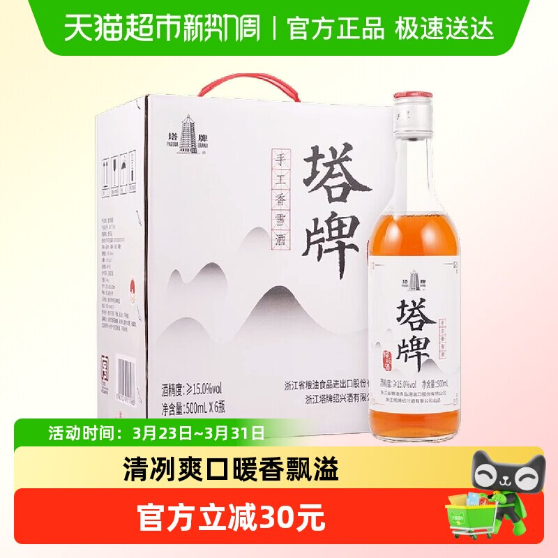 塔牌绍兴黄酒8年手工冬酿500ml*6瓶箱装糯米加饭酒绍兴特产花雕酒