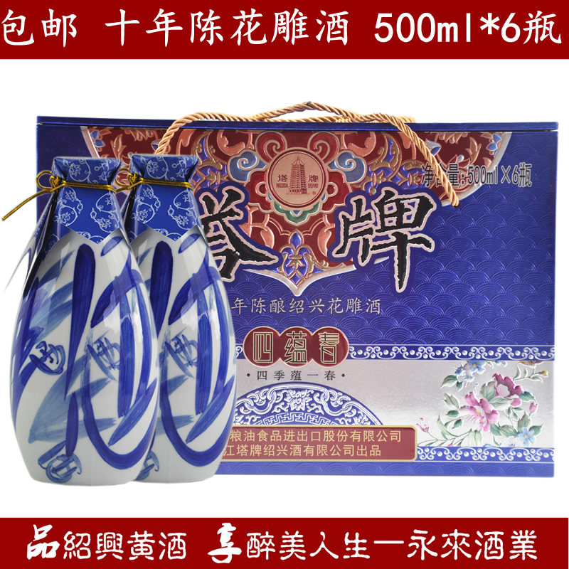 绍兴黄酒塔牌十年陈四蕴春500ml*6瓶半干型箱装礼品酒糯米酒