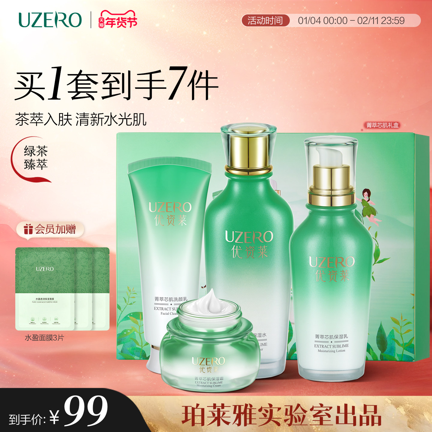 优资莱绿茶菁萃芯肌化妆品套装女补水保湿礼盒洁水乳护肤官方正品