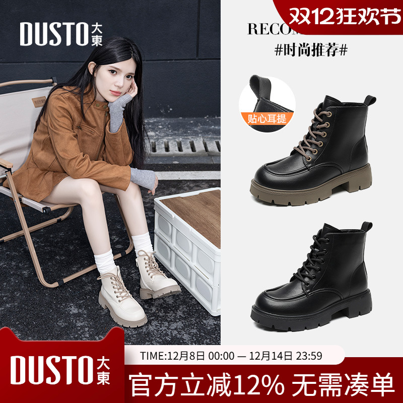 大东马丁靴女鞋2025冬新款小个子粗跟厚底黑色加绒英伦风短靴0103