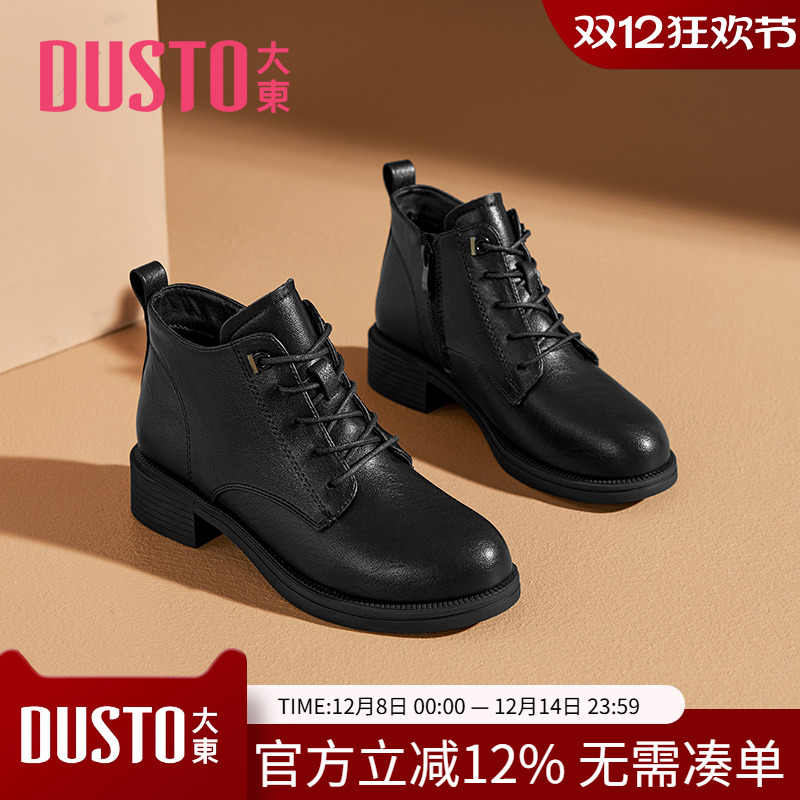 大东马丁靴女鞋2025冬季新款时尚休闲粗跟侧拉链中跟圆头D0004