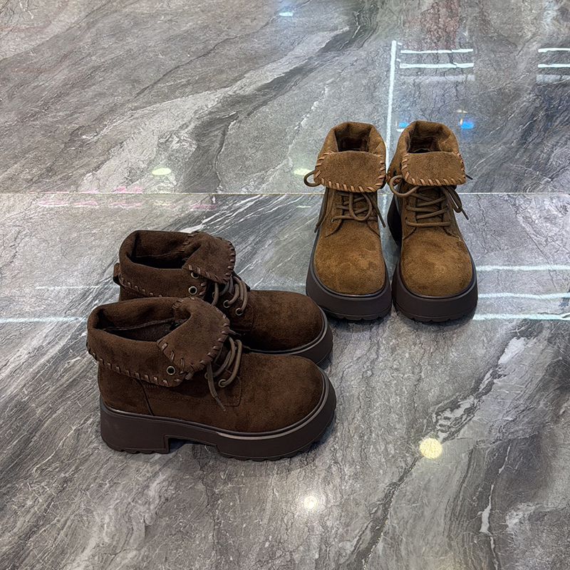 小个子粗跟加绒马丁靴女2025秋新款小众翻盖短靴美拉德系带时装靴