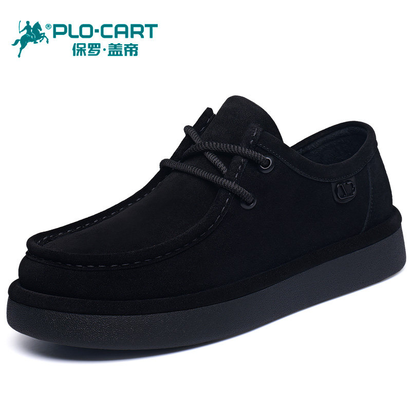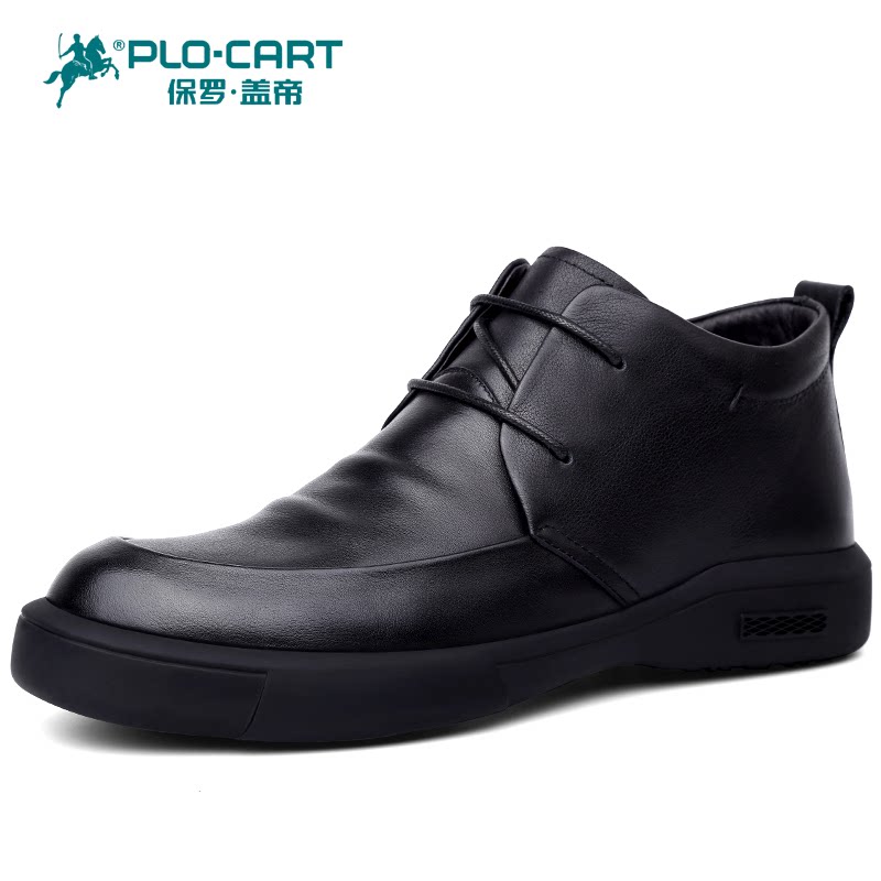 保罗盖帝男鞋冬季加绒保暖真皮厚底商务皮鞋潮流百搭男士休闲棉鞋
