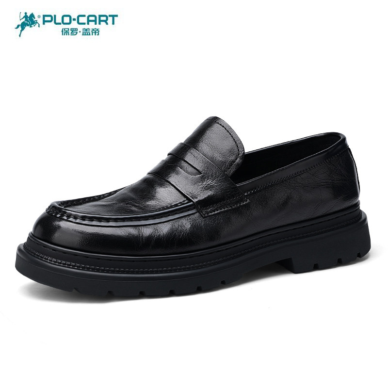 保罗盖帝男鞋春秋真皮商务正装休闲男士皮鞋正品潮流系带套脚圆头