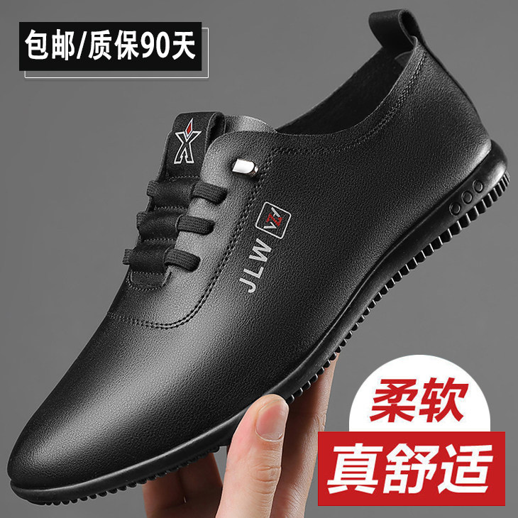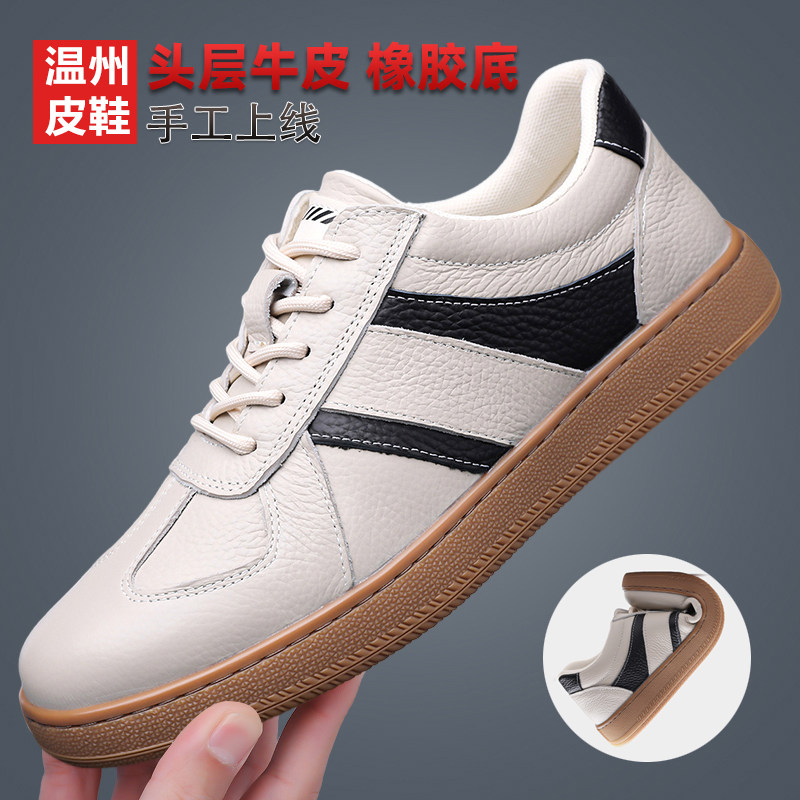 温州头层牛皮鞋男德训鞋软底透气爸爸四季健步驾车商务休闲小白鞋