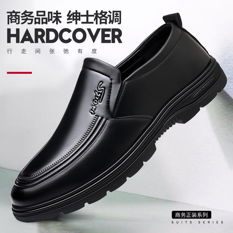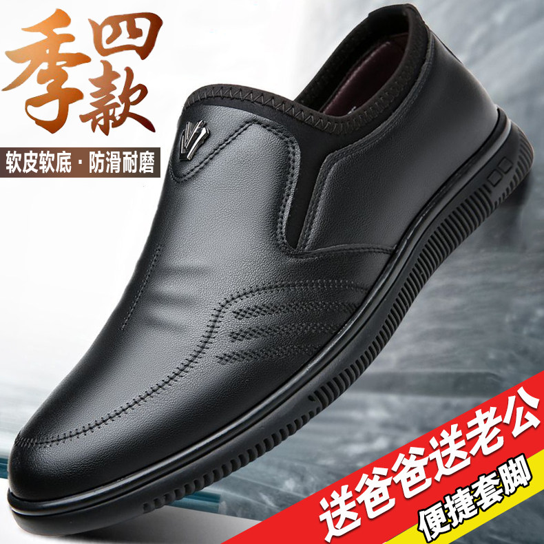 中老年男鞋一脚蹬商务休闲皮鞋软底防滑爸爸鞋驾车鞋工作鞋豆豆鞋