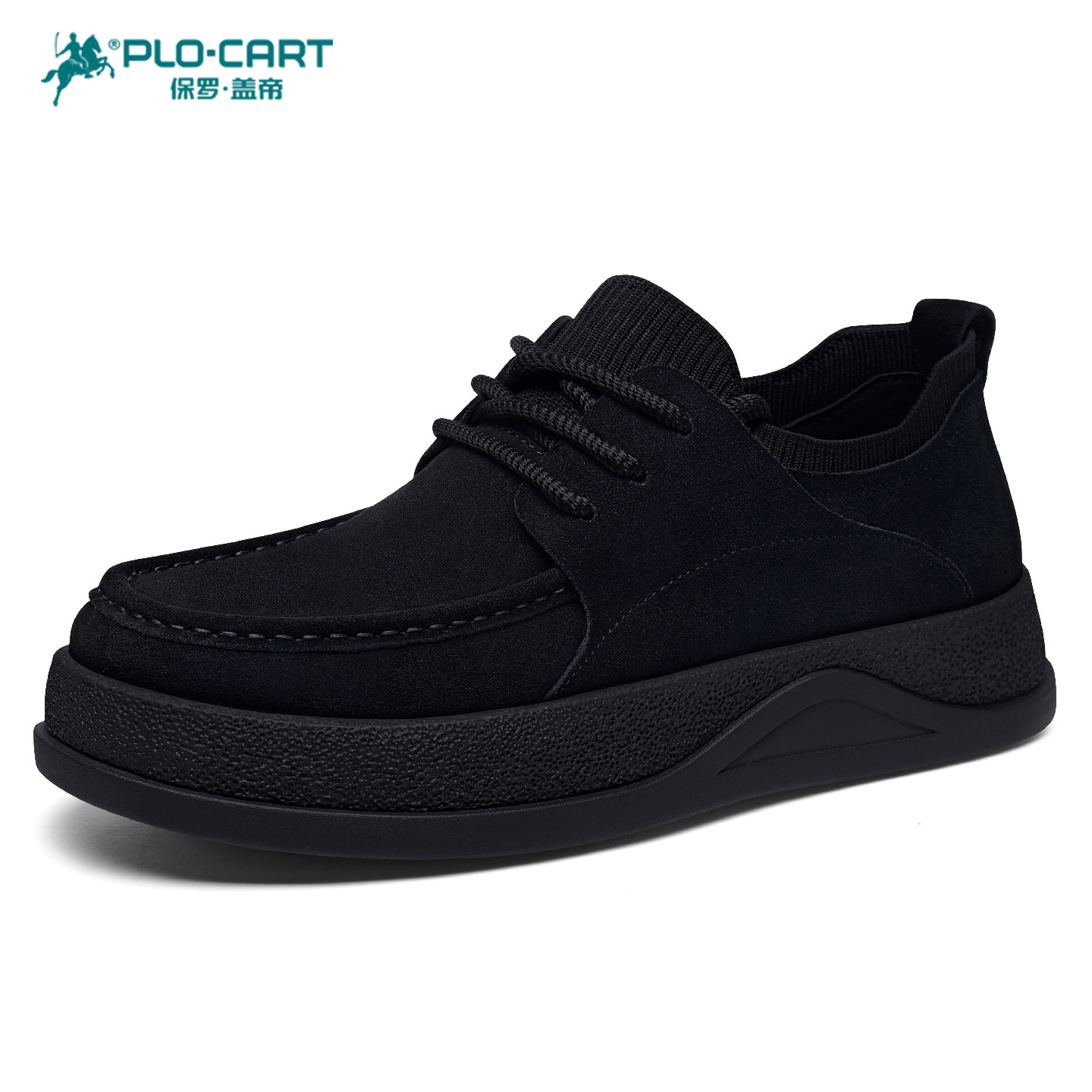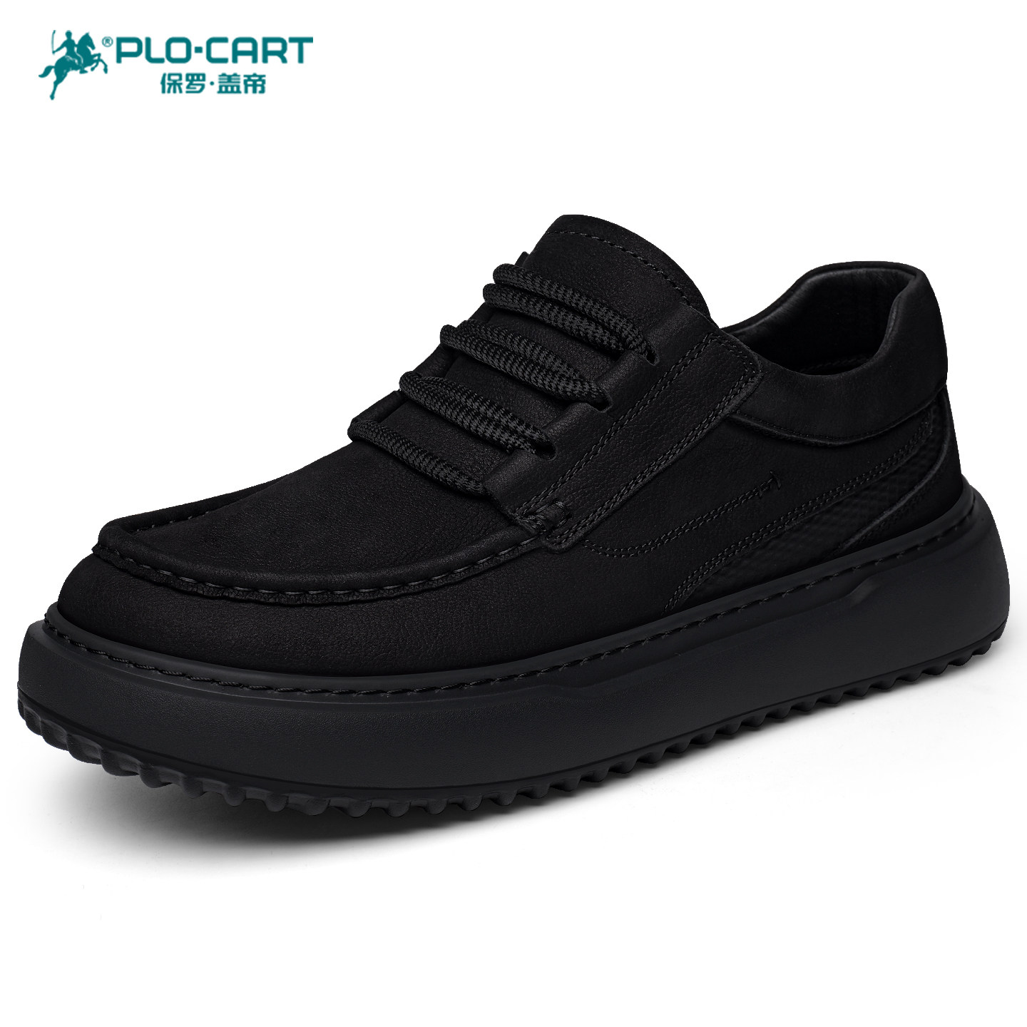 保罗盖帝男鞋春季真皮透气商务休闲百搭皮鞋男厚底防滑磨砂牛皮鞋