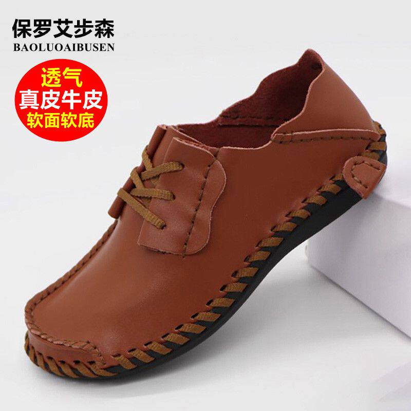 温州大码头层牛皮休闲皮鞋男软底耐脏爸爸鞋四季透气商务休闲男鞋