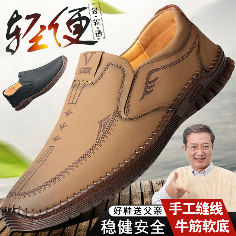 爸爸皮鞋男士一脚蹬牛筋底轻质防滑软底帕拉鞋透气老北京风驾车鞋