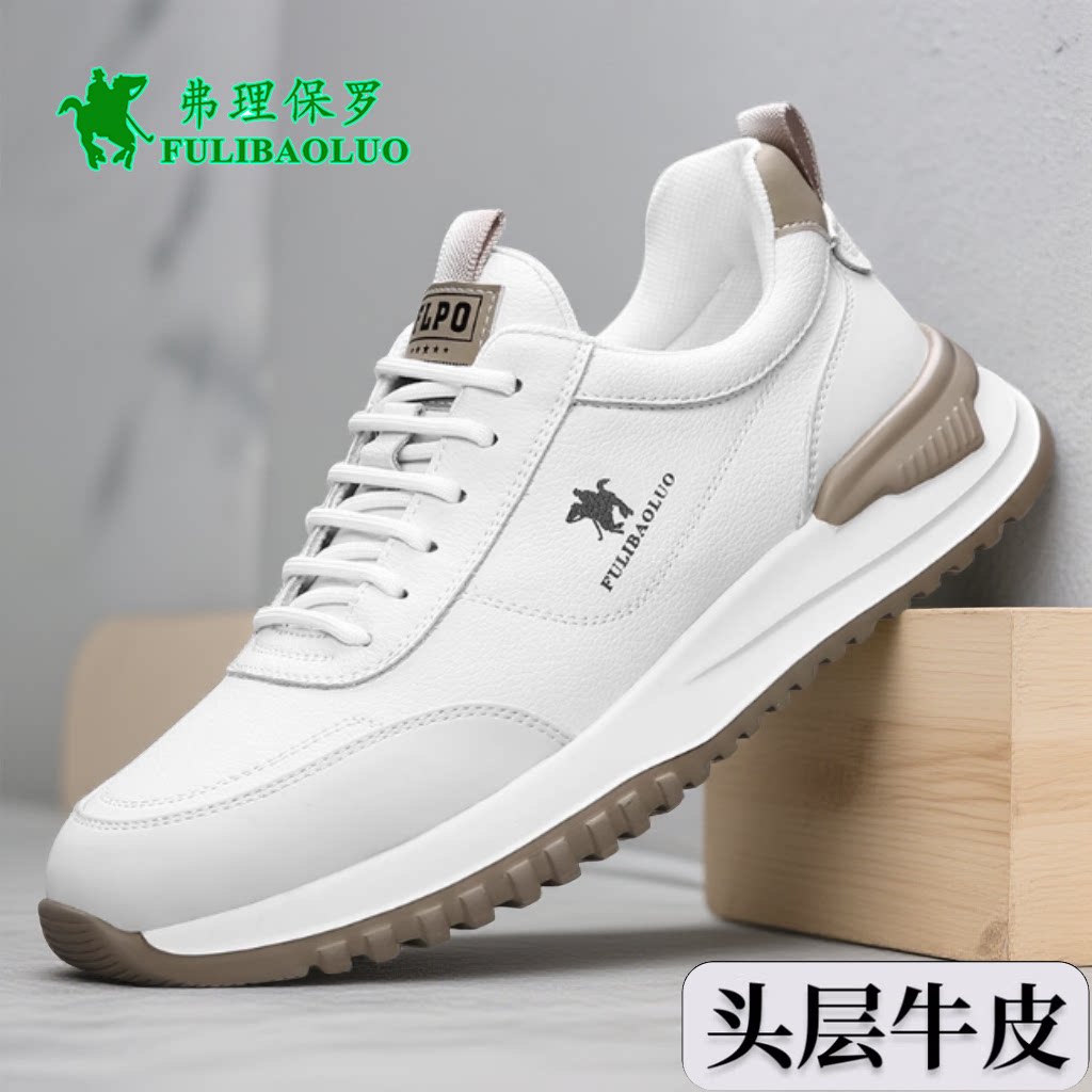 保罗品牌男鞋2026新款真皮小白鞋男士平跟运动休闲鞋头层牛皮鞋子