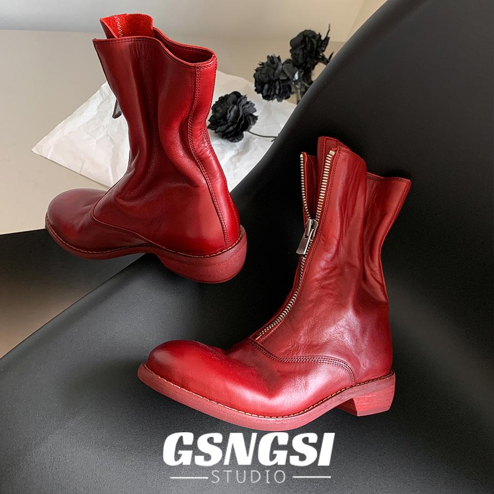 重工水洗马皮guidi靴310真皮短靴前拉链鬼帝女靴真皮大底中筒单靴