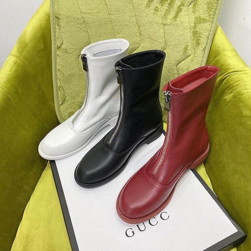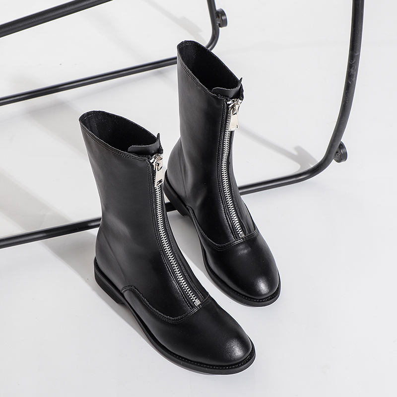 GUIDI日常通勤女士潮流前拉链低跟圆头短靴马丁靴银泰百货 301596