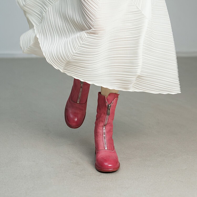 固特异手工鞋 guidi410前拉链马皮高筒长靴 复古做旧马丁靴平跟女