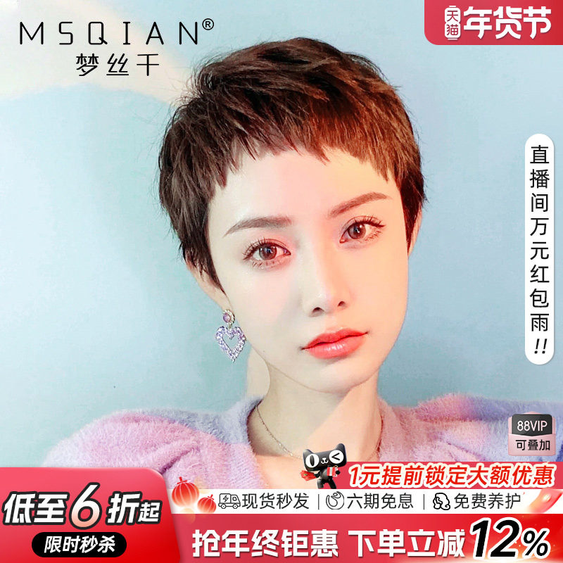 狗啃刘海假发短发女真发全真人发全头套夏季新款自然时尚超短发型