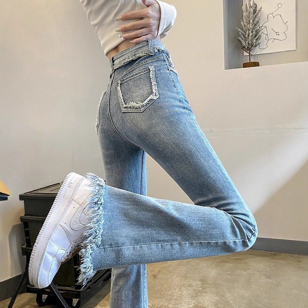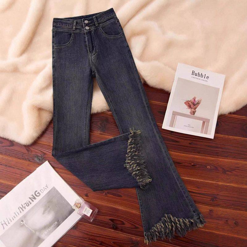 - 破洞牛仔裤女 九分裤 显瘦 高腰