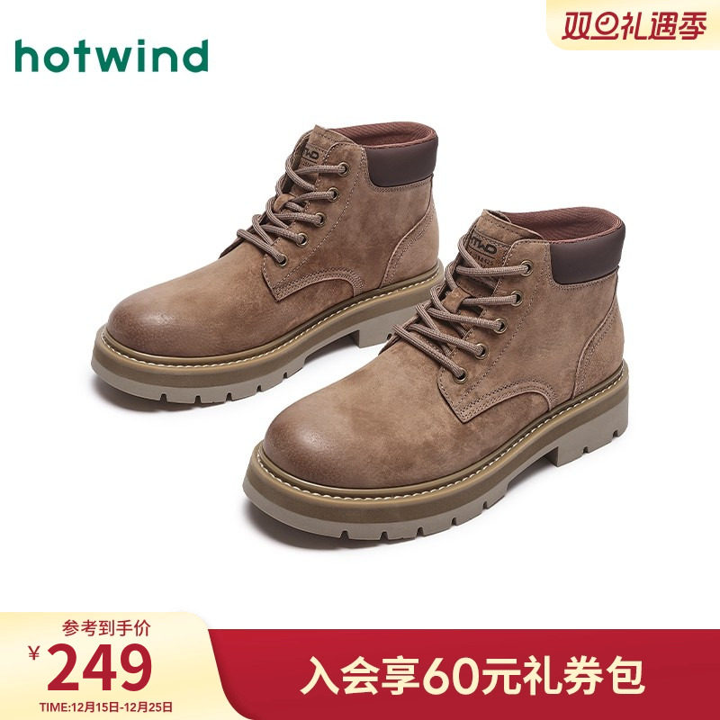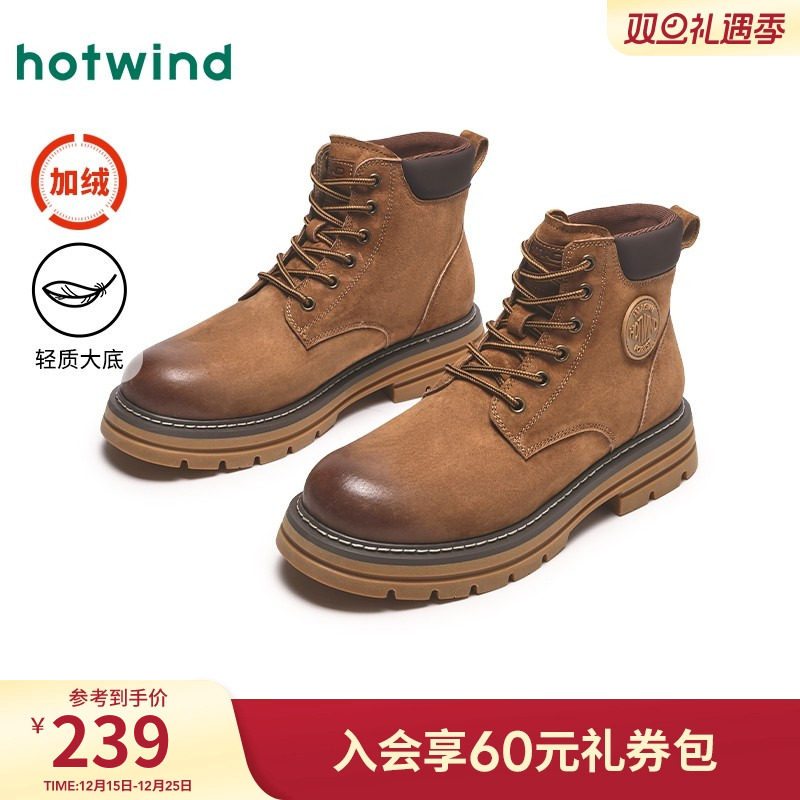 热风男鞋2025年冬季新款马丁靴男士时尚休闲工装靴增高H95M25402