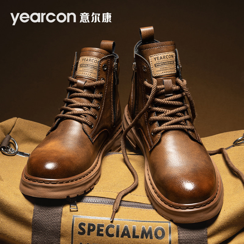 意尔康马丁靴男士2025新款秋冬季加绒英伦风爆款登山男鞋真皮短靴