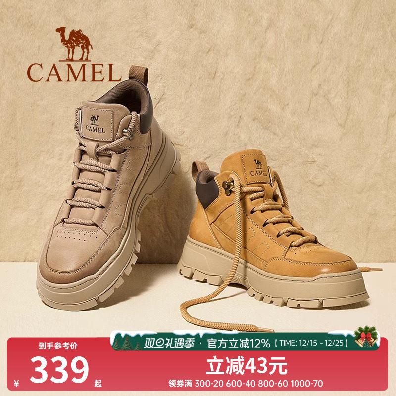 骆驼动感登山鞋男鞋2025新款冬季防滑工装马丁靴男士高帮加绒棉鞋