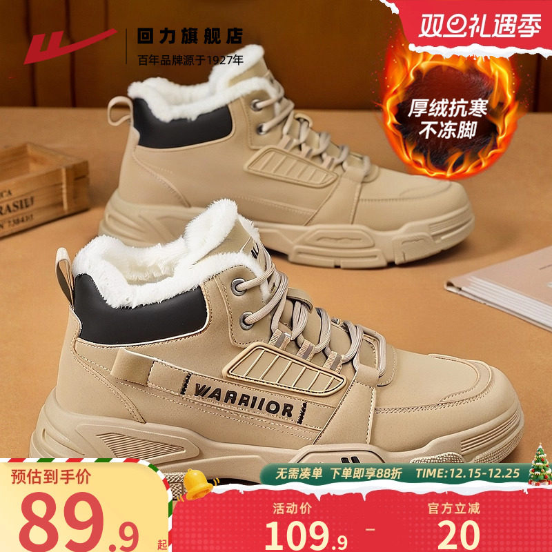 回力棉鞋男冬季保暖加绒鞋子男款马丁靴男士东北加厚雪地靴男冬季