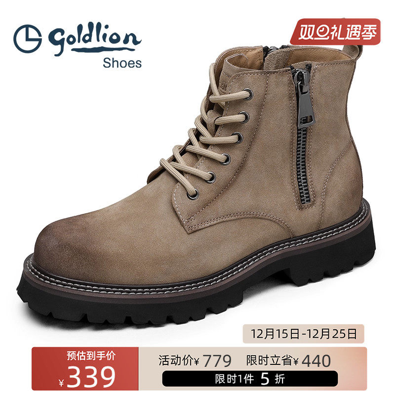 金利来男鞋 冬季真皮保暖马丁靴男士高帮厚底户外工装靴加绒皮靴