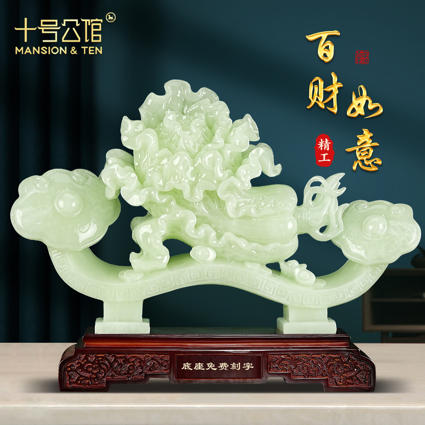 百财如意白菜摆件招财玉如意客厅旺宅玄关酒柜装饰品乔迁开业礼品
