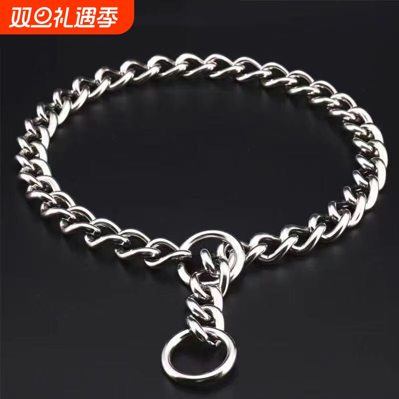 不锈钢狗项圈大型犬牵引绳德牧马犬中型犬狗链子狗脖链圈训犬p链