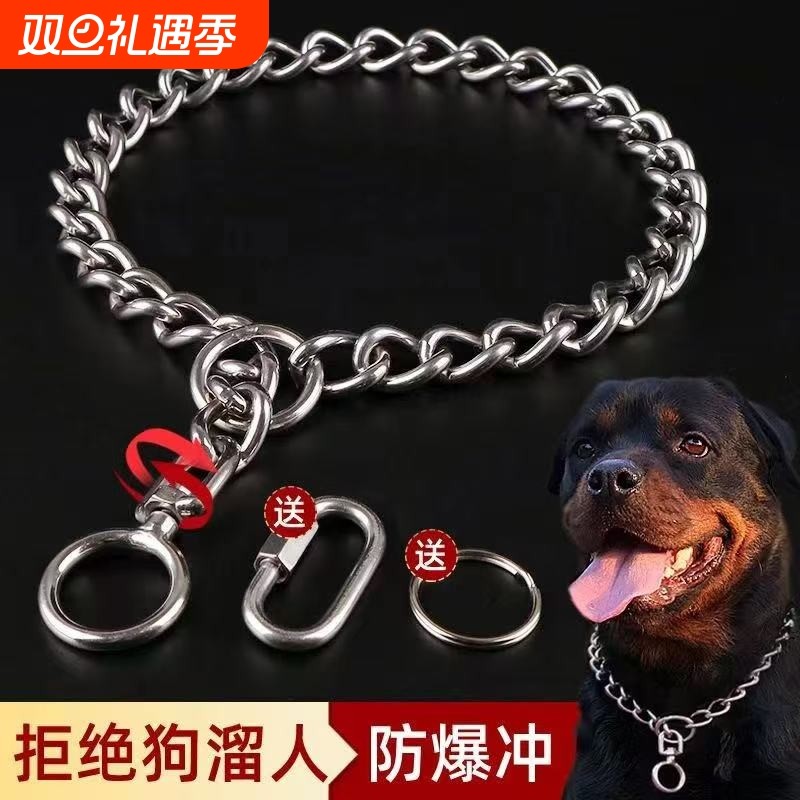 大型犬不锈钢狗狗项圈p链罗威纳卡斯罗马犬猛犬脖套防爆冲狗链子
