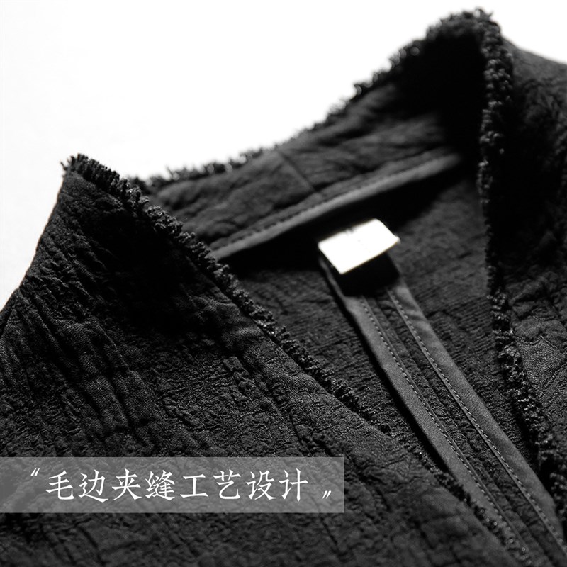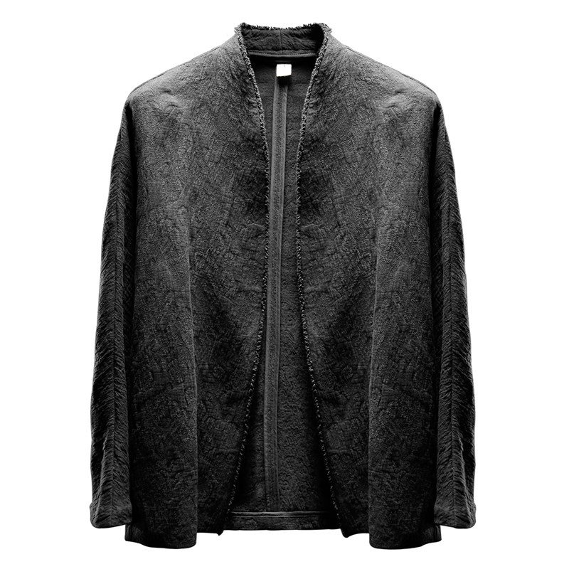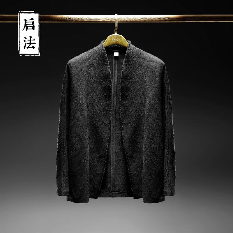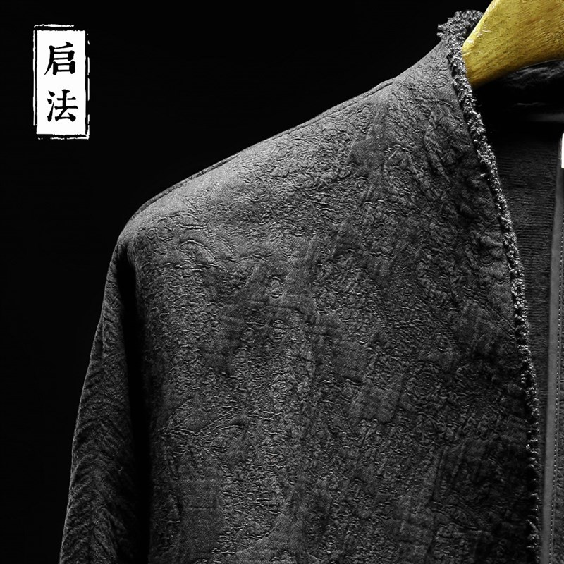 启法男装中式外套男士中国风黑色提花上衣男休闲宽松夹克男短款秋