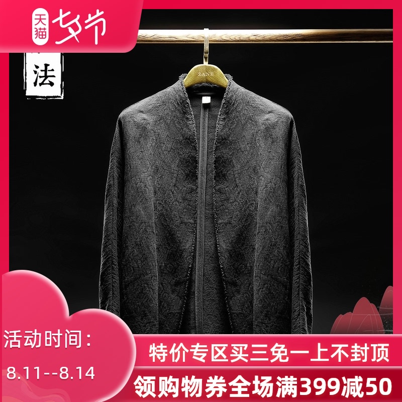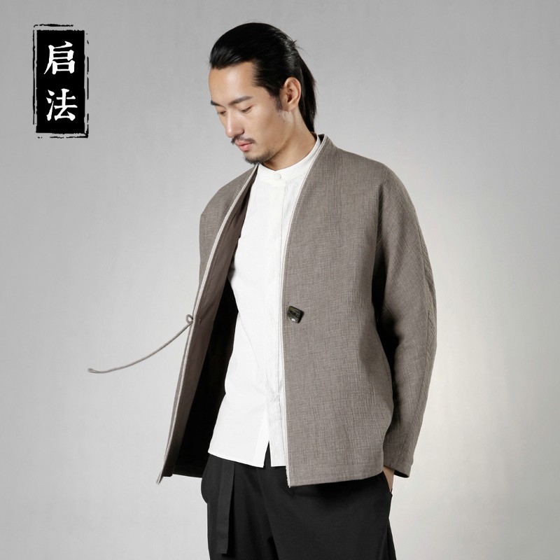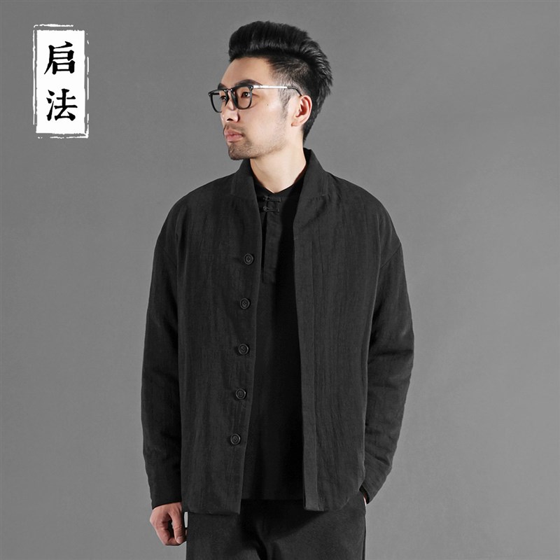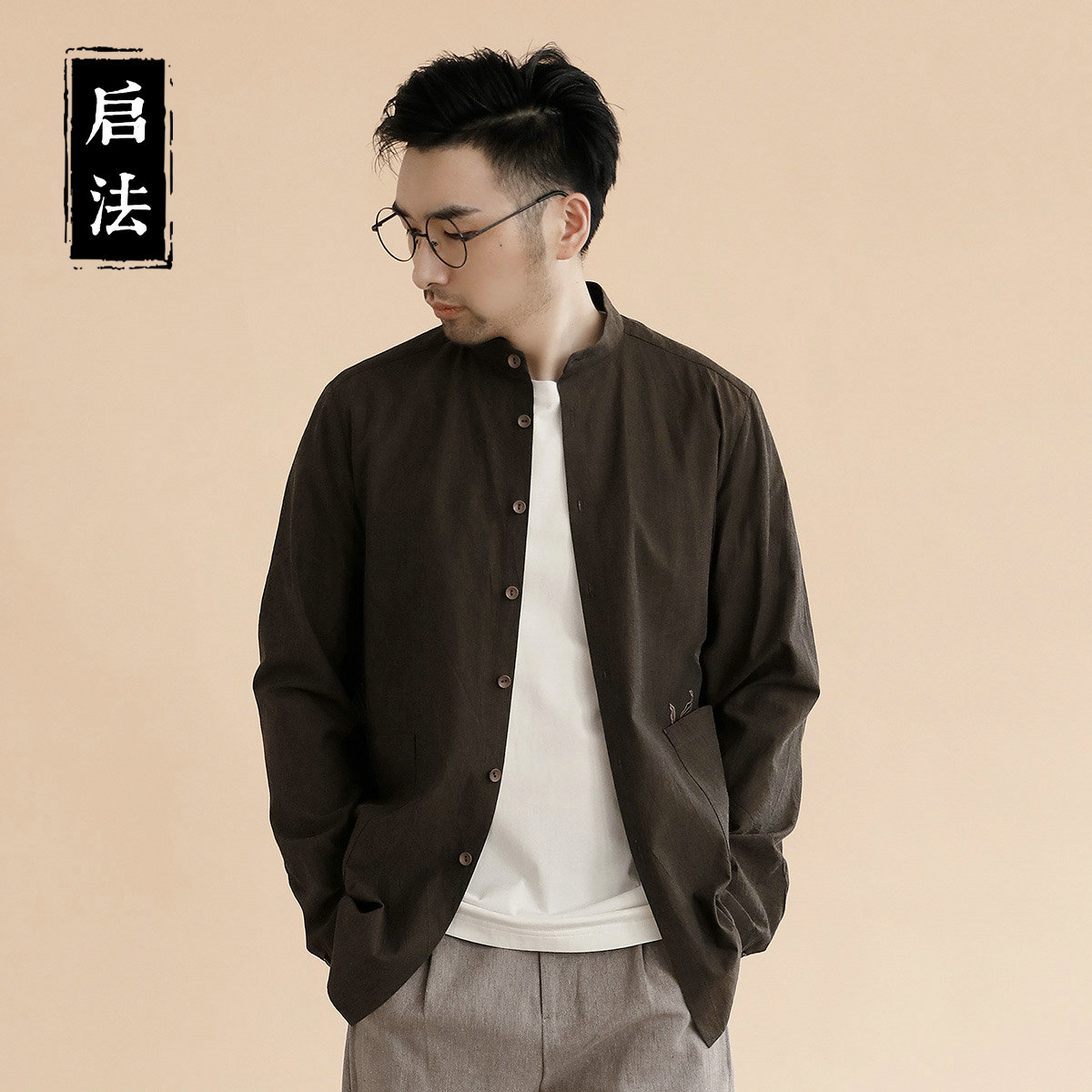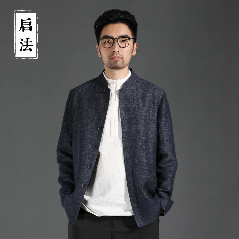 启法中国风男装夹克男士秋季休闲棉麻外衣男宽松中式亚麻外套男薄