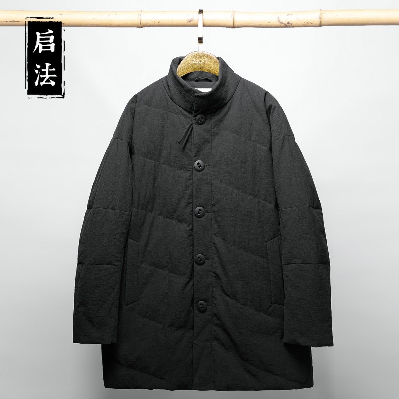 启法男装冬c季加厚立领羽绒服男士简约中长款保暖羽绒外套男羽绒