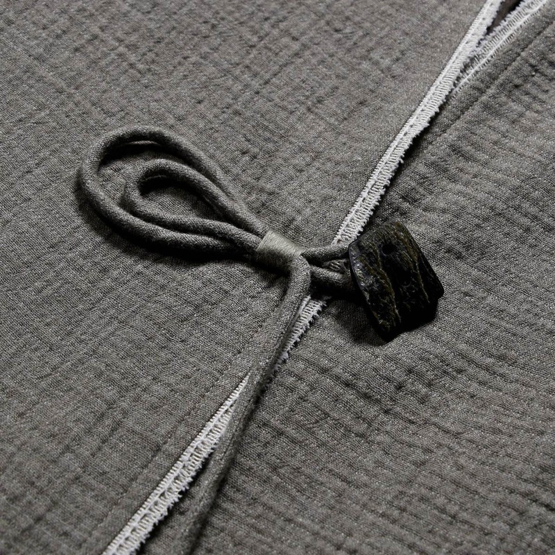 启法男装新款棉麻衬衫q男新中式盘扣V领衬衫男秋季复古休闲上衣男