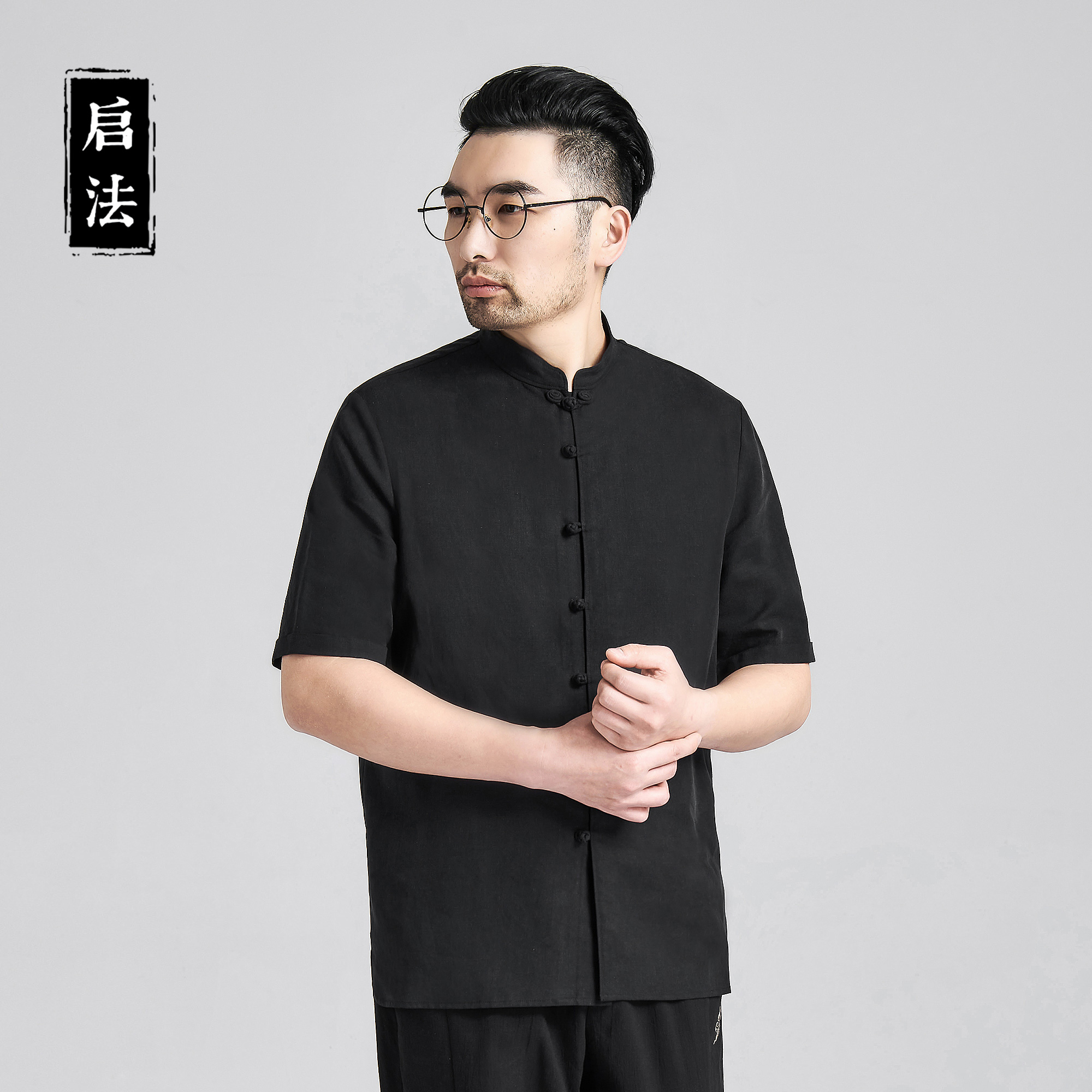 启法男装夏季短袖衬衫男中国风盘扣唐装衬衫男宽松休闲衬衣男薄款