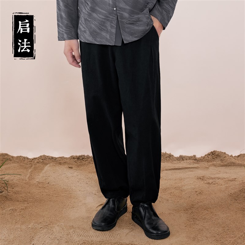启法男装秋季新款棉麻长裤男宽松中国风亚麻直筒裤男休闲百搭裤子