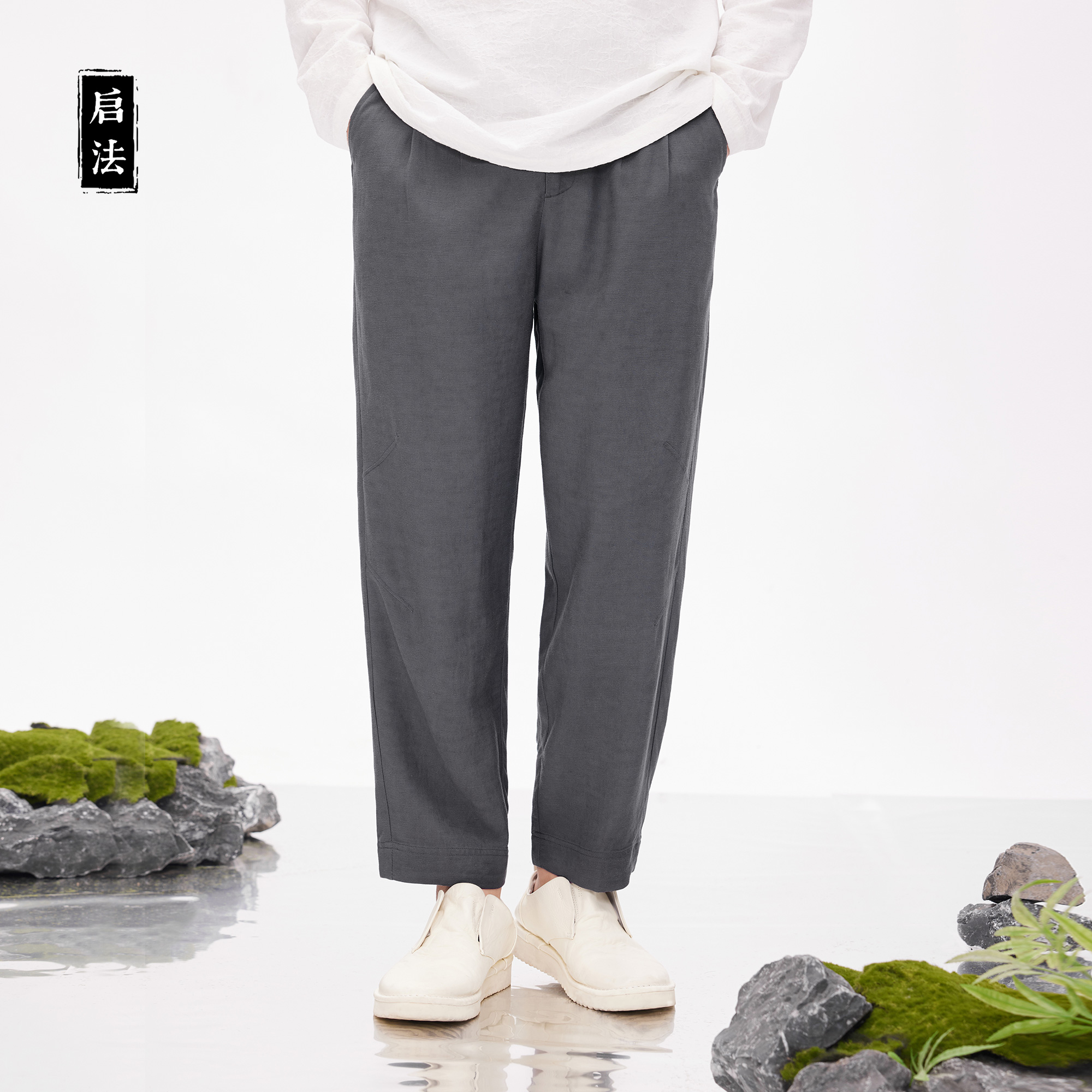 启法男装亚麻长裤男薄款男士垂感九分裤百搭休闲裤夏季男直筒裤子