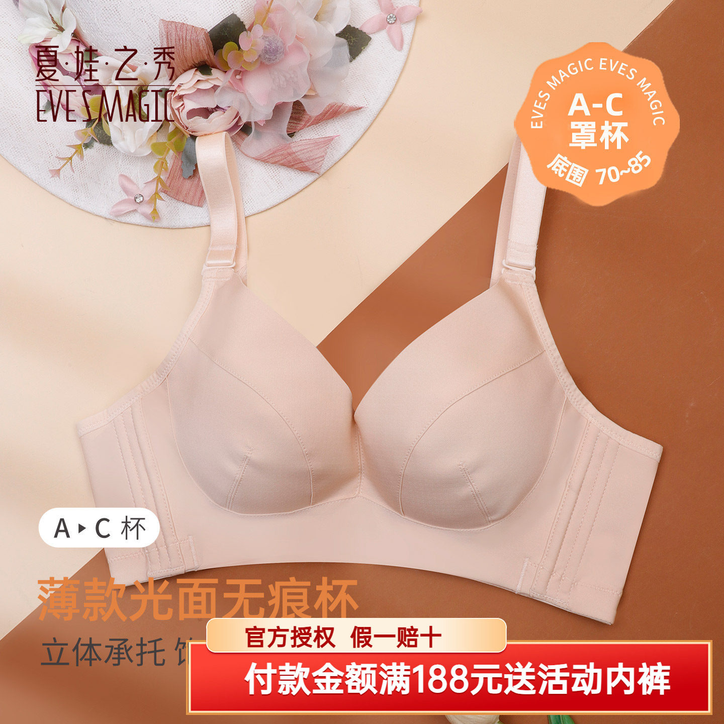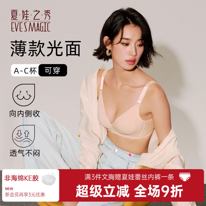 2026新款夏娃之秀无钢圈光面无痕聚拢文胸中厚杯防下垂收副乳内衣