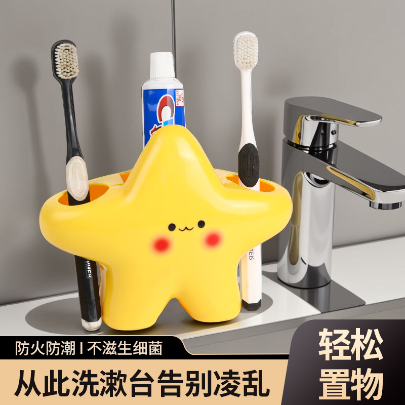 星星牙刷架可爱卡通洗漱台面电动牙刷收纳架高颜值情侣牙膏置物架