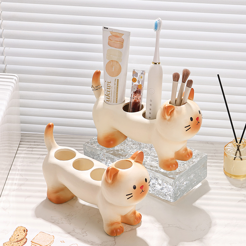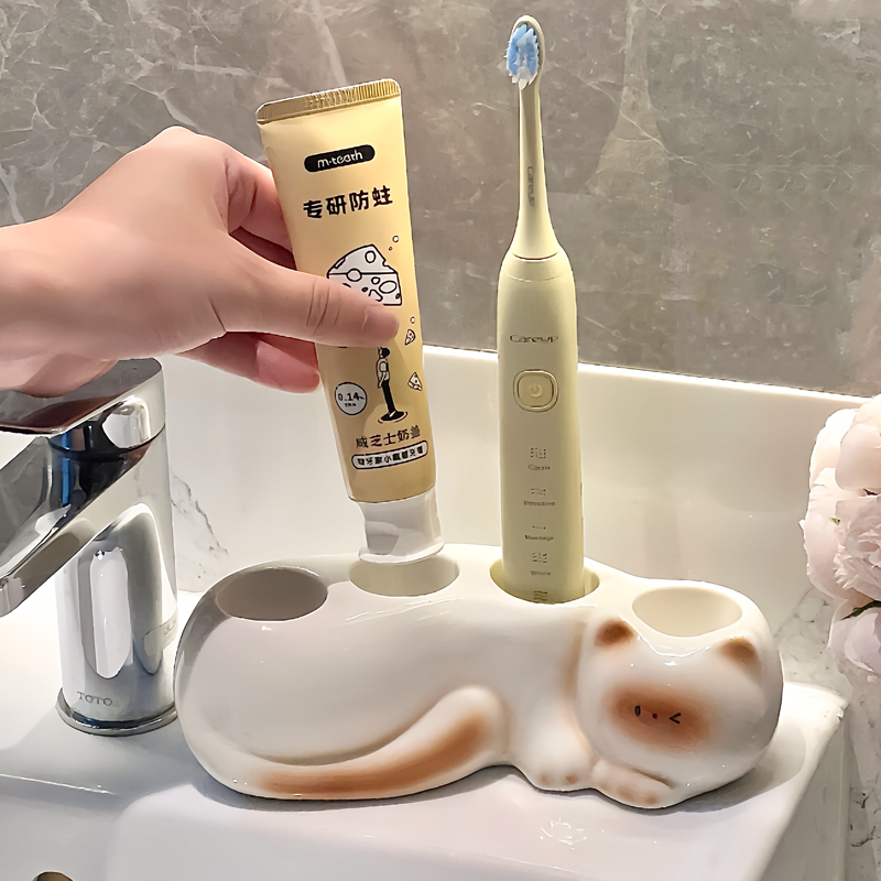 暹罗猫电动牙刷架子置物架情侣牙膏放置洗漱台面底座支架陶瓷座托
