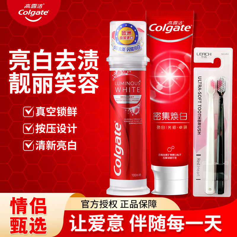 高露洁密集焕白牙刷牙膏结婚一对清新口气直立式情侣男女红色牙膏