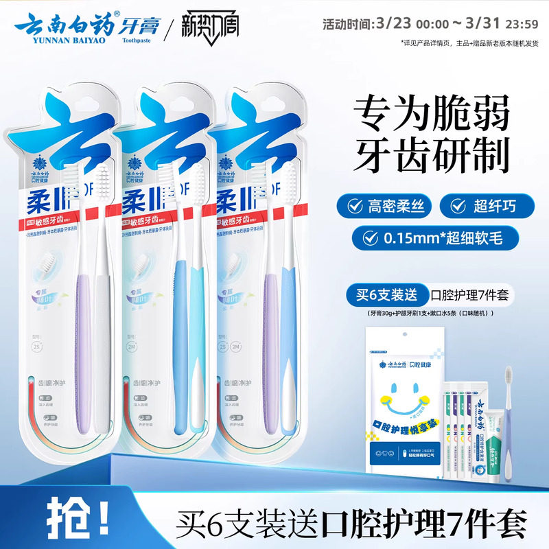 云南白药牙刷软毛牙刷敏感牙齿用便携式家庭装情侣用清洁口腔正品