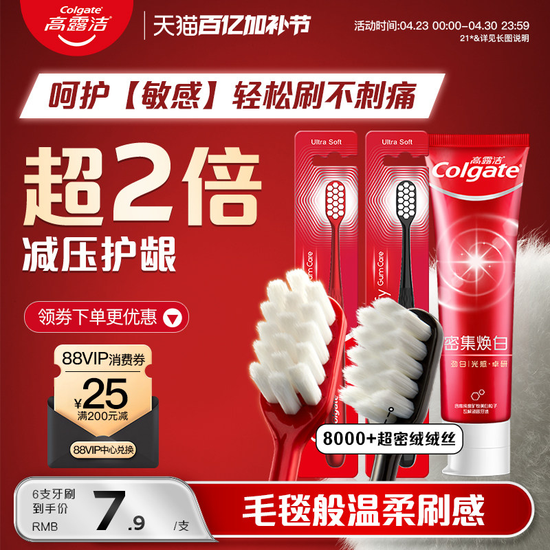 高露洁牙刷结婚绒绒丝护龈红色情侣款超软毛敏感专用备婚一对牙膏