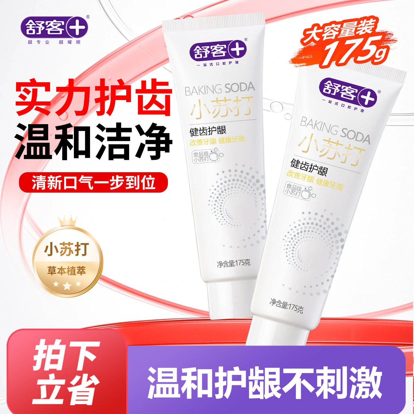 舒客舒克小苏打健齿护龈牙膏175g清新口气成人情侣男女家庭正品