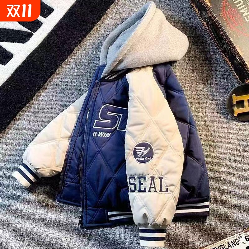 男童夹棉外套秋冬季2025新款洋气儿童加厚棒球服潮宝宝棉衣服童装