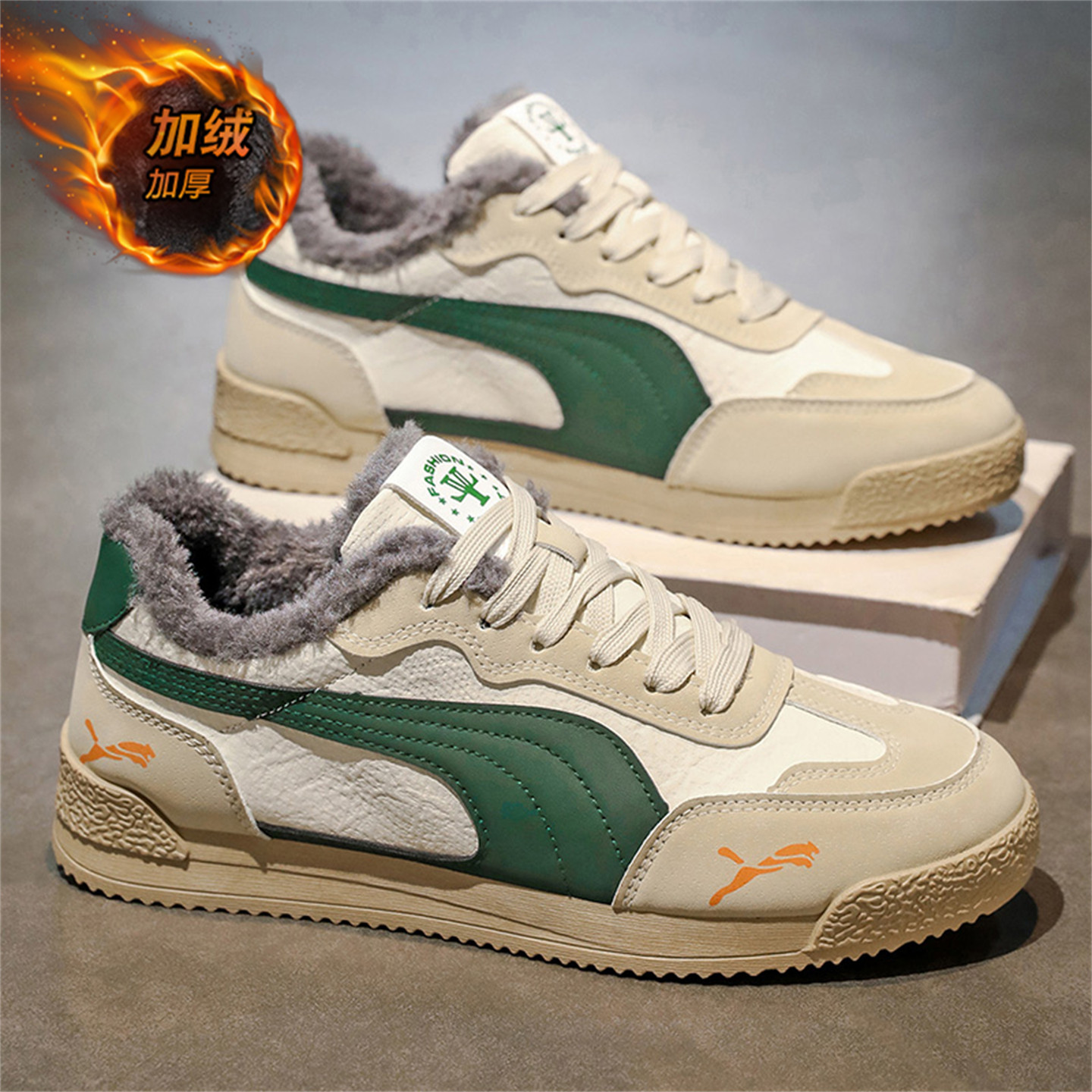 欧洲站男鞋冬季加绒保暖原创设计感学生百搭小白鞋运动鞋面包板鞋