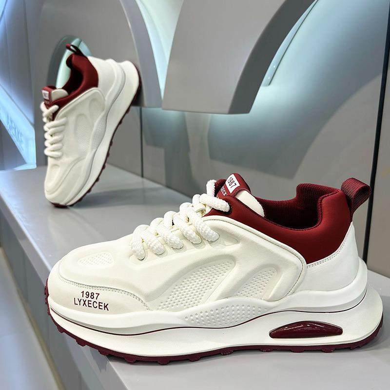 欧洲站男鞋冬季青少年百搭休闲运动鞋厚底增高红色华夫阿甘老爹鞋